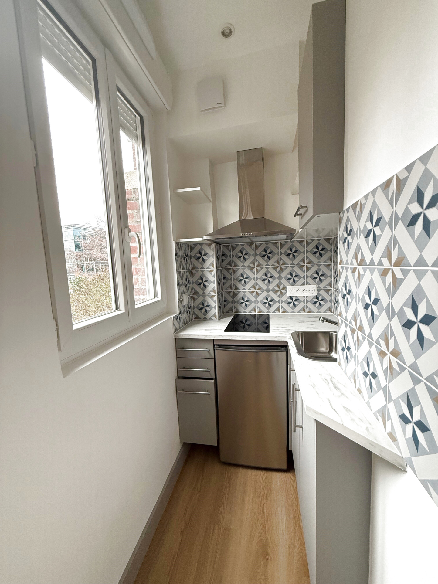 Résidence située au pied du tramway T2 avec accès direct la Défense, studio de 16.20 m² au 1er étage entièrement refait neuf. Pièce principale, cuisine équipée, salle d'eau avec wc. Chauffage central collectif. Commerces accessibles à pied. Loyer mensuel : 790.€ C.C (dont 80.€ de provisions sur charges) Honoraires locataire : 245.€ TTC.